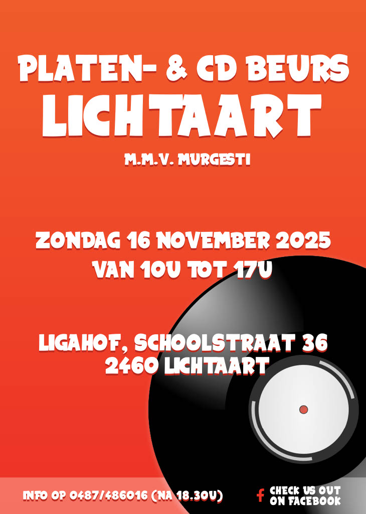 Op zondag 16 november vindt de cd- en platenbeurs in het Ligahof in Lichtaart plaats. Het Ligahof vind je in de Schoolstraat 36 in Lichtaart.
